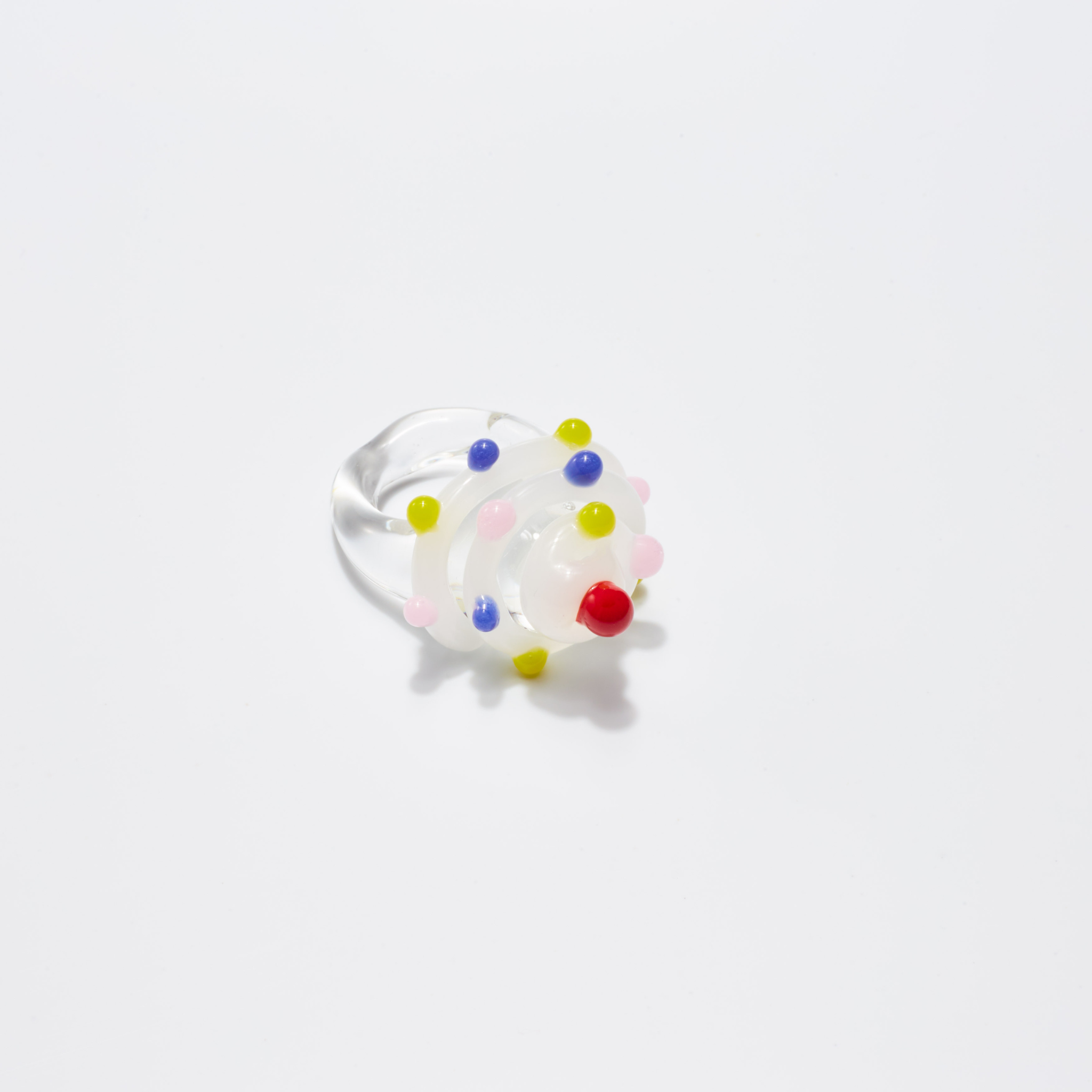 Inspired by a freshly swirled ice cream cone, this ring captures that fun, sweet twist we all recognize. With colorful sprinkles embedded in the glass, it’s a playful and refreshing piece that brings the cheerful spirit of the Sprinkles universe straight into your look.